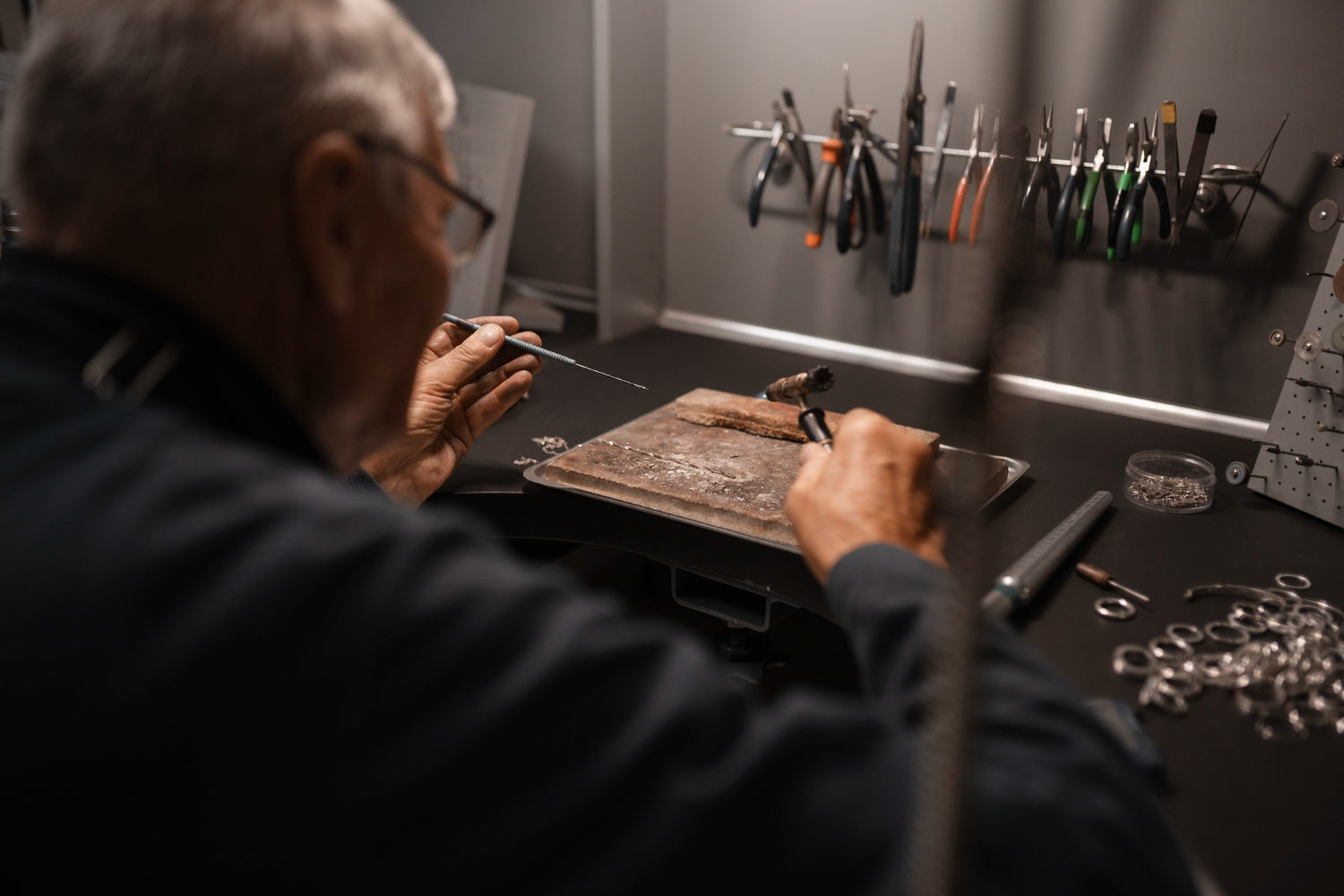 Inspirationen bakom SMYCKO kommer från det traditionella smyckeshantverket – precis som hos den gamle smeden på bilden. Nu tömmer vi lagret och har utförsäljning på alla varor. Fynda tidlösa smycken till priser du kanske aldrig ser igen.